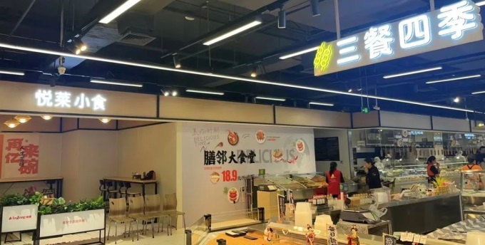 銀座七里山店還首推了銀座“膳鄰大食堂”,采用18.9元的顧客自助模式,提供精品菜炸貨、炒貨、果切等當(dāng)日出清的食品。