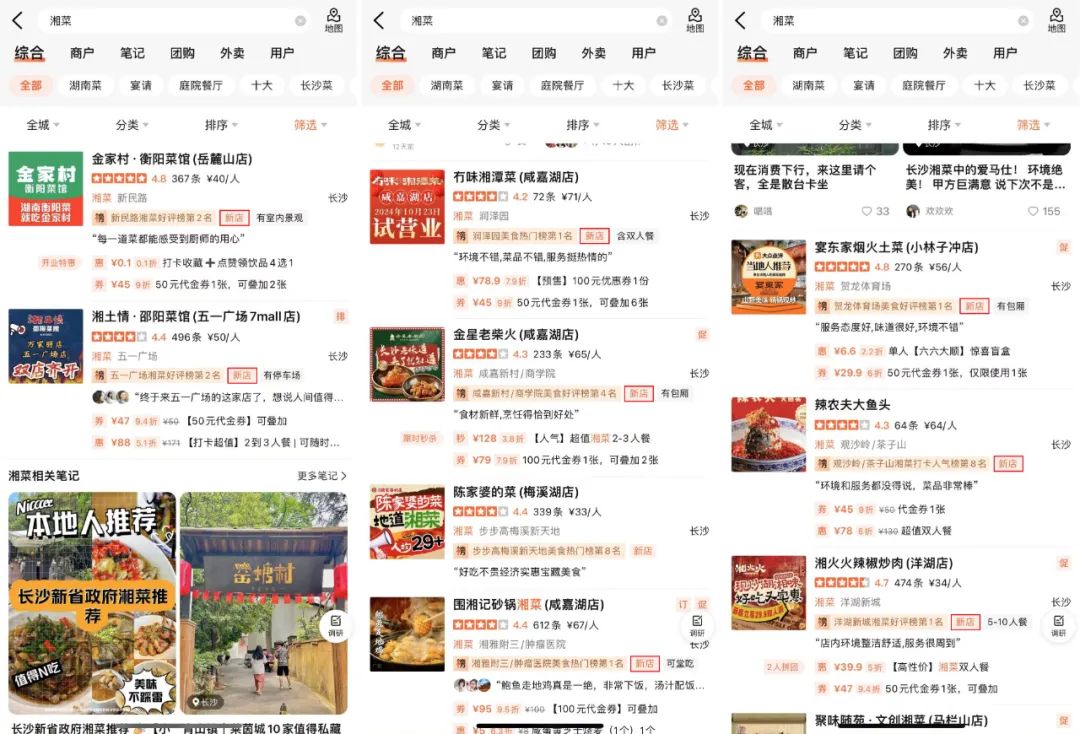 另外,全國各地,掀起了一波湘菜的開店熱。這里既有耳熟能詳?shù)念^部品牌,還有不少區(qū)域連鎖和夫妻老婆店。比如內(nèi)參君定位在“大本營”長沙,僅工商大學(xué)周邊,就搜出了數(shù)十家開業(yè)的新店,有意思的是,衡陽菜館、邵陽菜館、湘潭菜等林立,細(xì)分趨勢格外明顯,不少品牌還掛出“當(dāng)?shù)厝送扑]”的關(guān)鍵詞,試圖在激烈的競爭中多一分勝算。