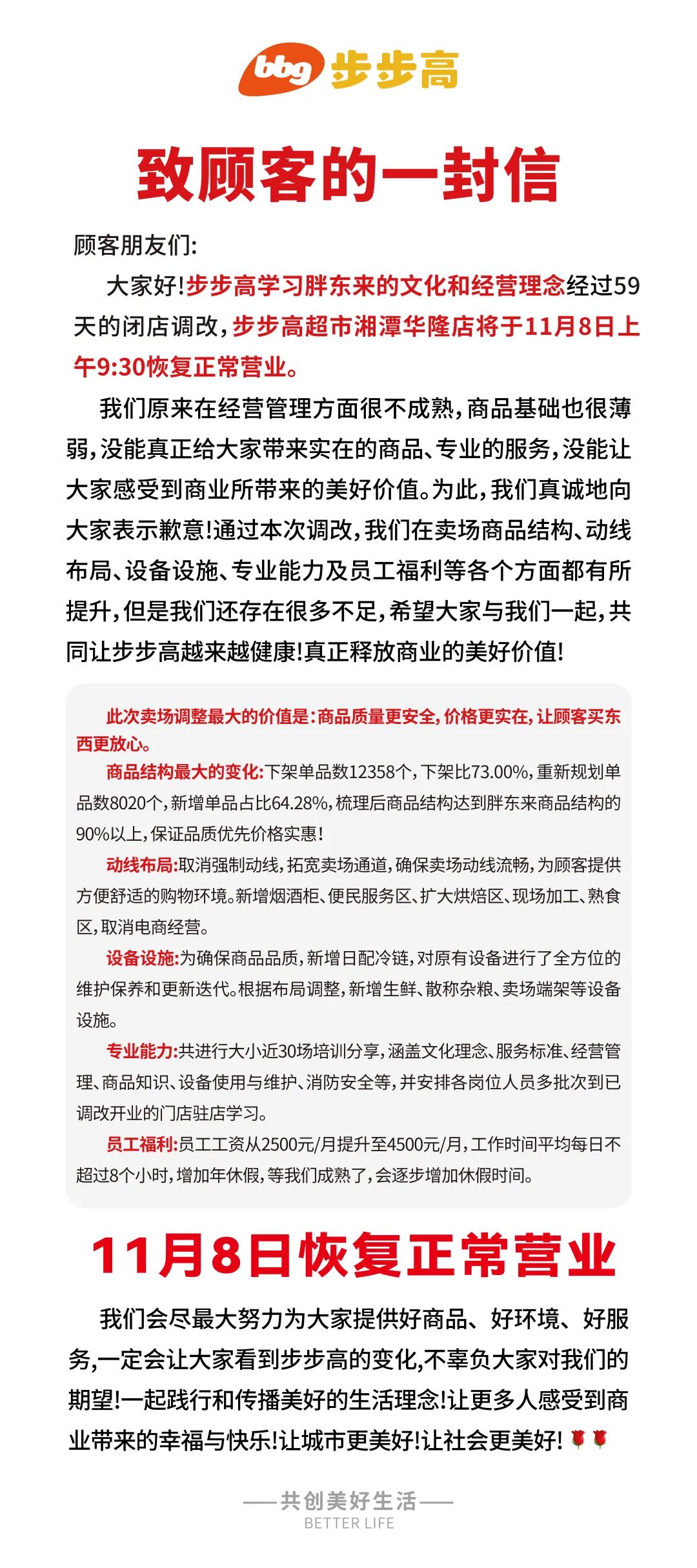 步步高超市湘潭華隆店調(diào)改后11月8日恢復(fù)營業(yè)