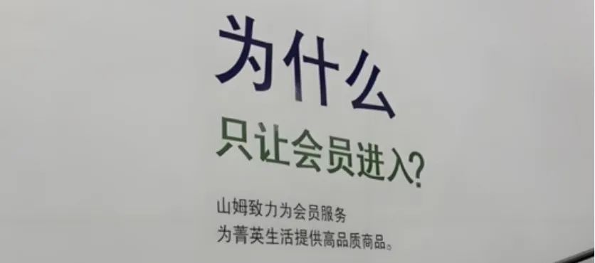 每一家山姆超市的進(jìn)門口,都會(huì)印有多張自己的價(jià)值觀標(biāo)語,其中最醒目的就是“為什么只讓會(huì)員進(jìn)入?”答案是:“山姆致力于為會(huì)員服務(wù),為菁英生活提供高品質(zhì)商品。”