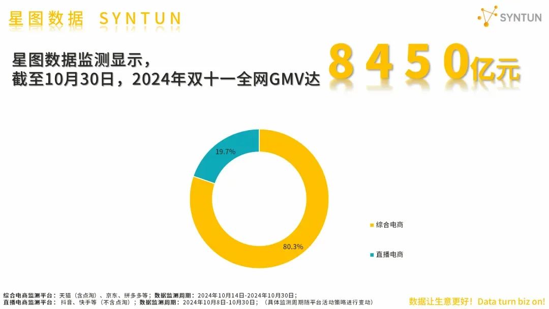 這從第三方數(shù)據(jù)也能看的出來(lái)。星圖數(shù)據(jù)報(bào)告顯示,截至10月30日,2024年雙十一全網(wǎng)累計(jì)銷售額達(dá)到8450億元人民幣。電商平臺(tái)在促銷策略和消費(fèi)者體驗(yàn)上的持續(xù)創(chuàng)新和優(yōu)化在此刻得到驗(yàn)證,這一數(shù)字不僅刷新了10月歷史銷售紀(jì)錄,也彰顯出消費(fèi)者對(duì)雙十一購(gòu)物節(jié)的持續(xù)熱情與高度參與。