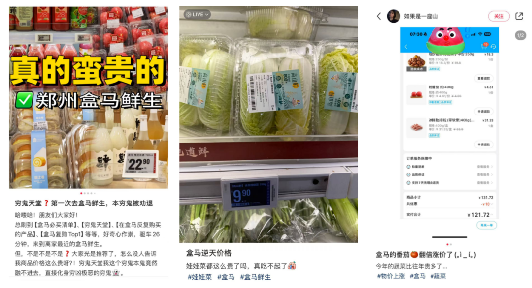 打開小紅書等社交平臺,對于盒馬價格貴的吐槽比比皆是。