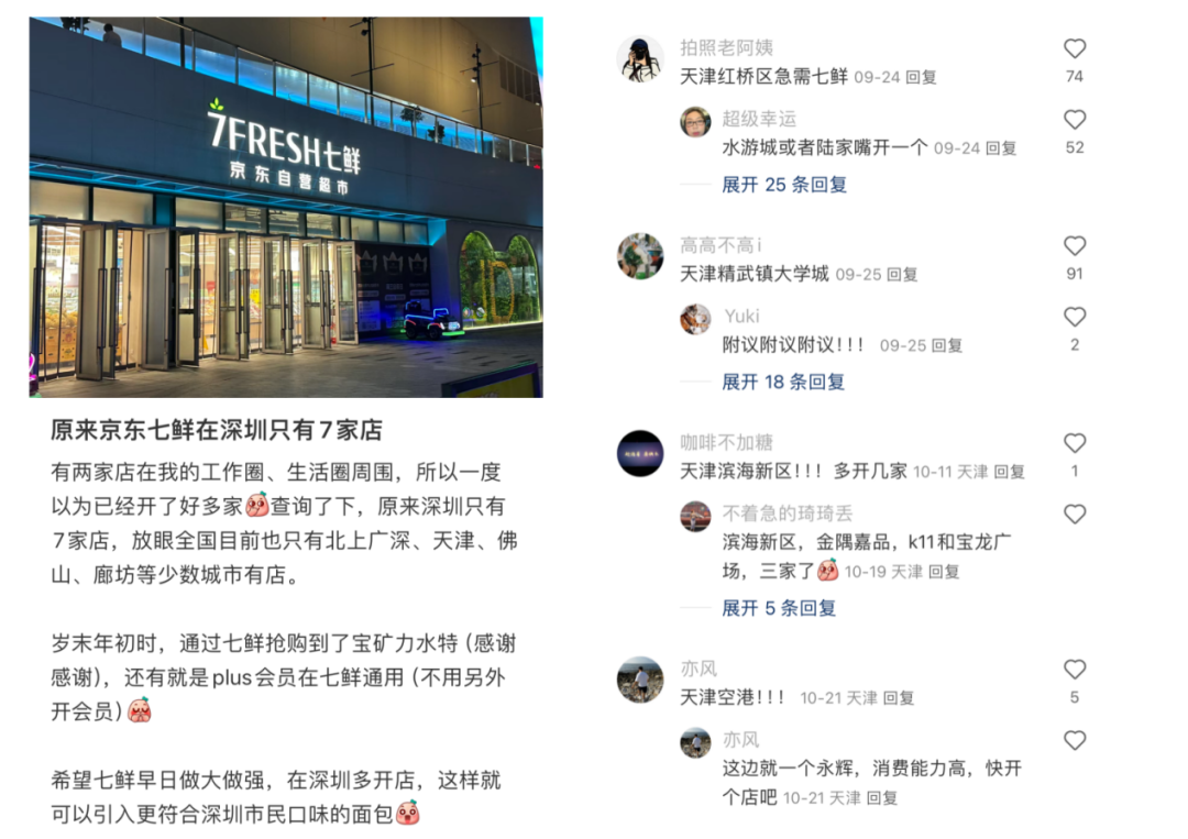 如果是將價格戰(zhàn)進行到底的話,京東七鮮相比美團小象和盒馬,也有著明顯的短板——那就是規(guī)模小。京東七鮮的線下門店數(shù)量有限,主要覆蓋京津冀、上海和大灣區(qū)等地域,這直接影響了其在市場上的覆蓋范圍和影響力。從配送端來看,無法像美團小象那樣提供高效的配送服務(wù)。不過,京東七鮮顯然也意識到了這點,在發(fā)起本輪價格戰(zhàn)之前,京東七鮮就完成了與前置倉業(yè)務(wù)的融合,這可以被視為“補短板”的關(guān)鍵動作。
