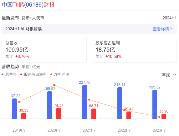 盡管過去幾年,飛鶴的業(yè)績持續(xù)走低,但2024年以來,卻走出了“微笑曲線”。財報顯示,2024年上半年,飛鶴營收100.95億元,同比增長3.7%;凈利潤19.12億元,同比增長18.1%。