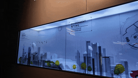 金鷹未來(lái)世界科技館具有集聚新技術(shù)、新產(chǎn)品的功能,吸引國(guó)內(nèi)外的科技企業(yè)展示他們的最新成果。在科幻、酷炫的視覺(jué)效果下,干貨滿滿。在這個(gè)可以隔空控制的大屏里,為大家介紹了碳研究院的技術(shù)成果,城市的高樓大廈通過(guò)微納材料工程設(shè)計(jì), 既可保證室內(nèi)的舒適性,也可以減少空調(diào)的能耗。在透明玻璃和四個(gè)實(shí)體模型構(gòu)成的互動(dòng)空間,為我們展示了微納科技的技術(shù)應(yīng)用場(chǎng)景,我們只需點(diǎn)擊面前的透明玻璃,即可了解相關(guān)信息。汽車(chē)尾氣會(huì)產(chǎn)生許多有害氣體,在這里為我們展示了微納低維材料氣體凈化功能。