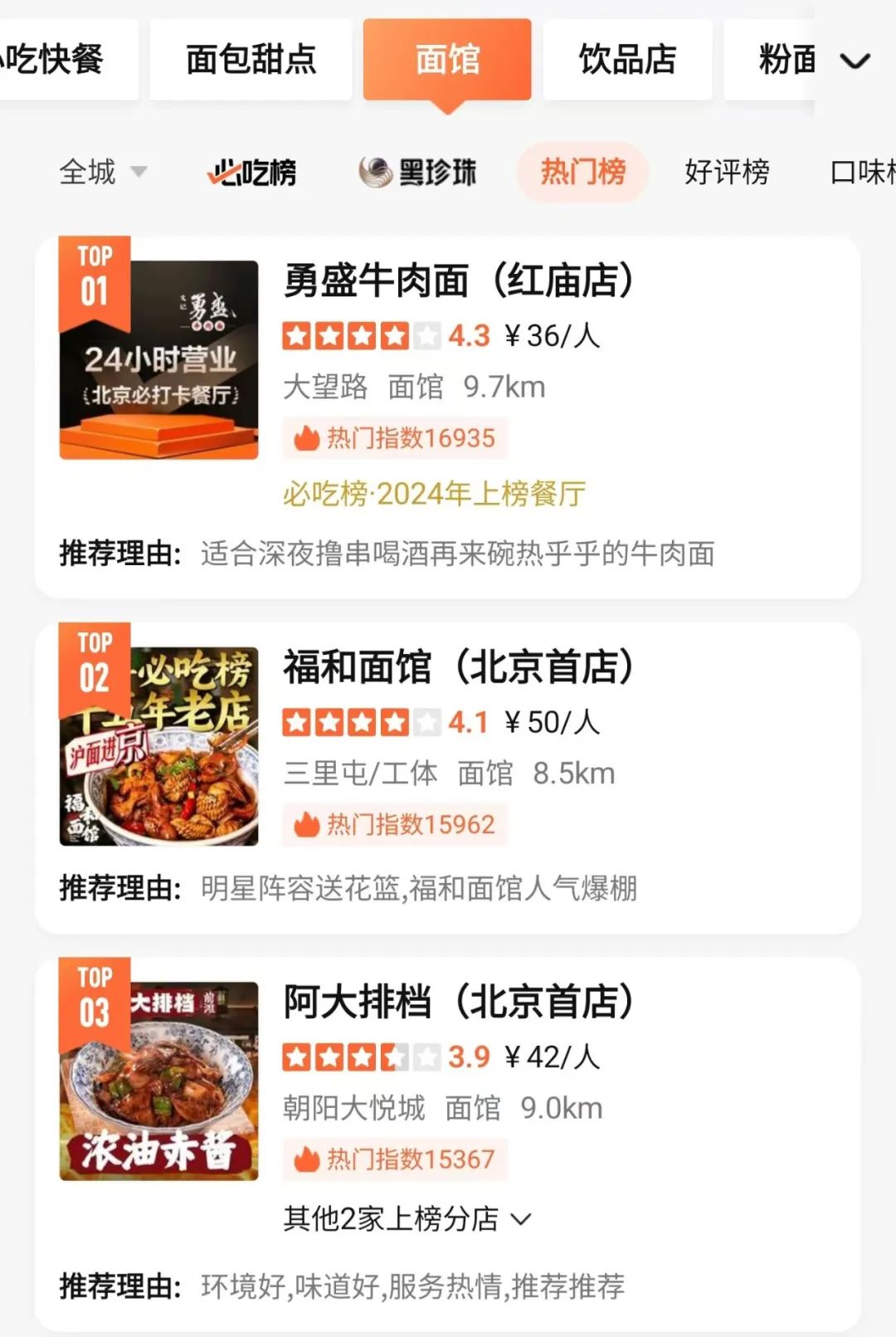 大眾點(diǎn)評顯示,北京面館熱門榜前三,除了開了11年的“老網(wǎng)紅”勇盛牛肉面,其余兩家都是今年新開到北京的本幫面館。