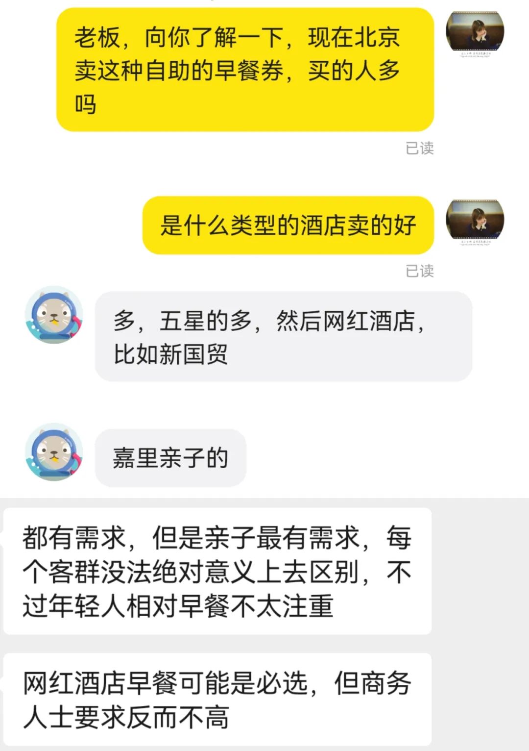 一是一些商務(wù)型酒店,原本就在城市的CBD商圈,這類酒店開(kāi)放自助早餐,主要瞄向白領(lǐng)們。