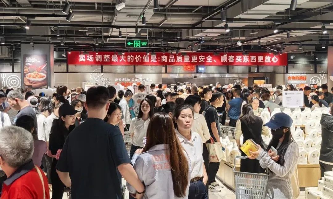 作為“新手上路”,深圳卓悅匯店在營業(yè)過程中主打“聽勸”,針對員工和顧客反饋的問題,第一時間進(jìn)行優(yōu)化!笆兹湛土鞅瑵M,我們第二天就增調(diào)了100部購物車、100個購物籃;顧客反饋入口有異味的問題,門店當(dāng)晚對地面和設(shè)備進(jìn)行深度清洗,管道緊急疏通,味道已經(jīng)徹底消除。”門店負(fù)責(zé)人介紹。