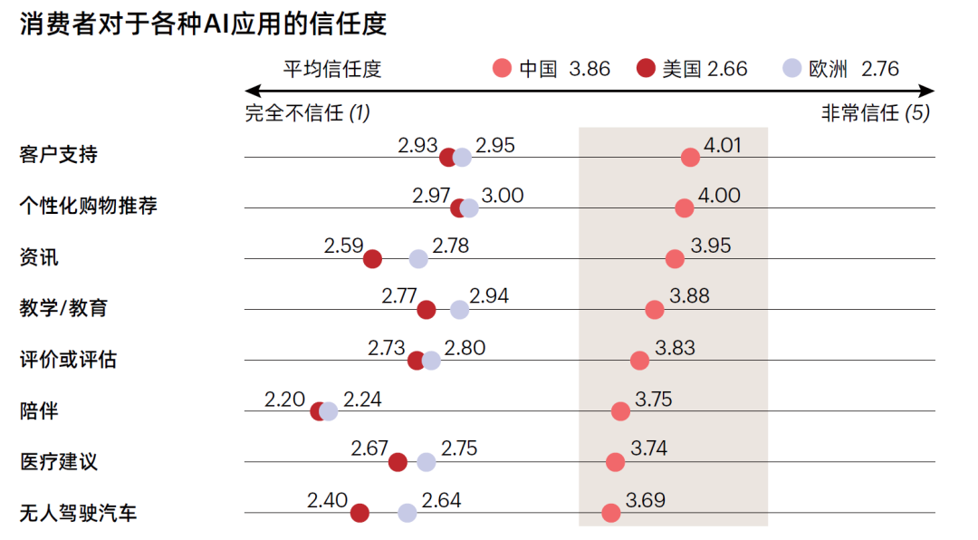 圖3:消費(fèi)者對(duì)各類AI的信任度 資料來源:貝恩咨詢:《2024年 “雙十一”:從AI中尋找新的增長(zhǎng)點(diǎn),零售業(yè)需要思考六個(gè)問題》