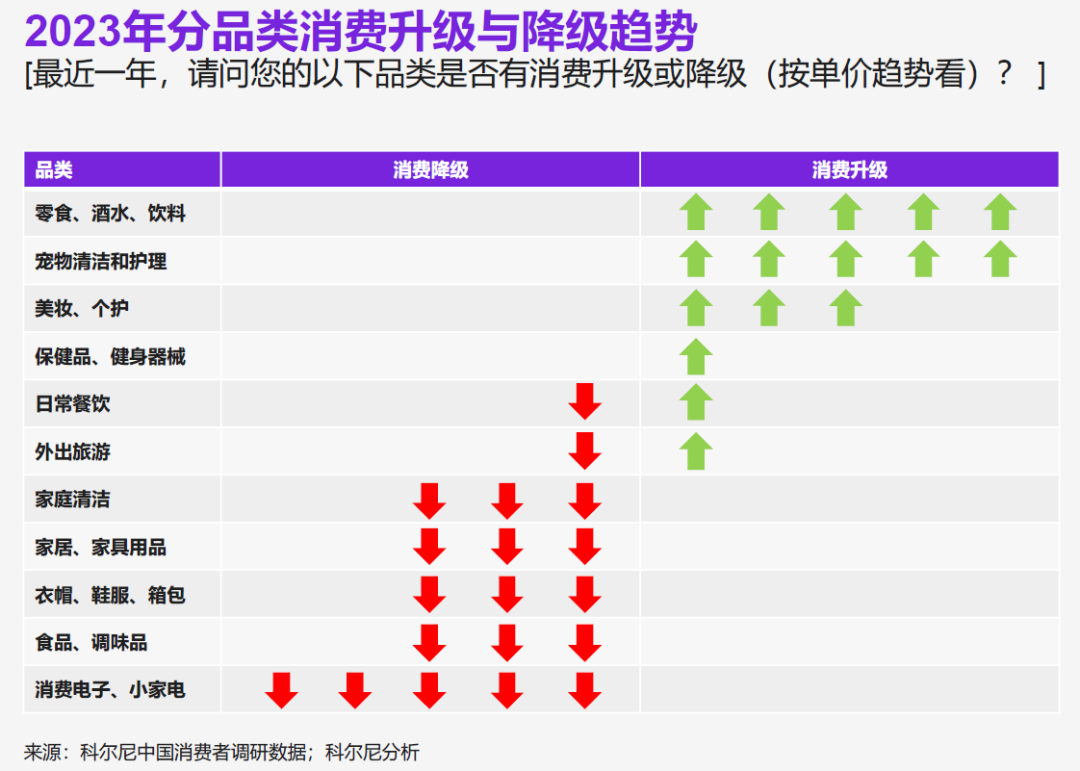 圖4:2023年分品類消費(fèi)升級(jí)與降級(jí)趨勢(shì) 資料來源:科爾尼管理咨詢