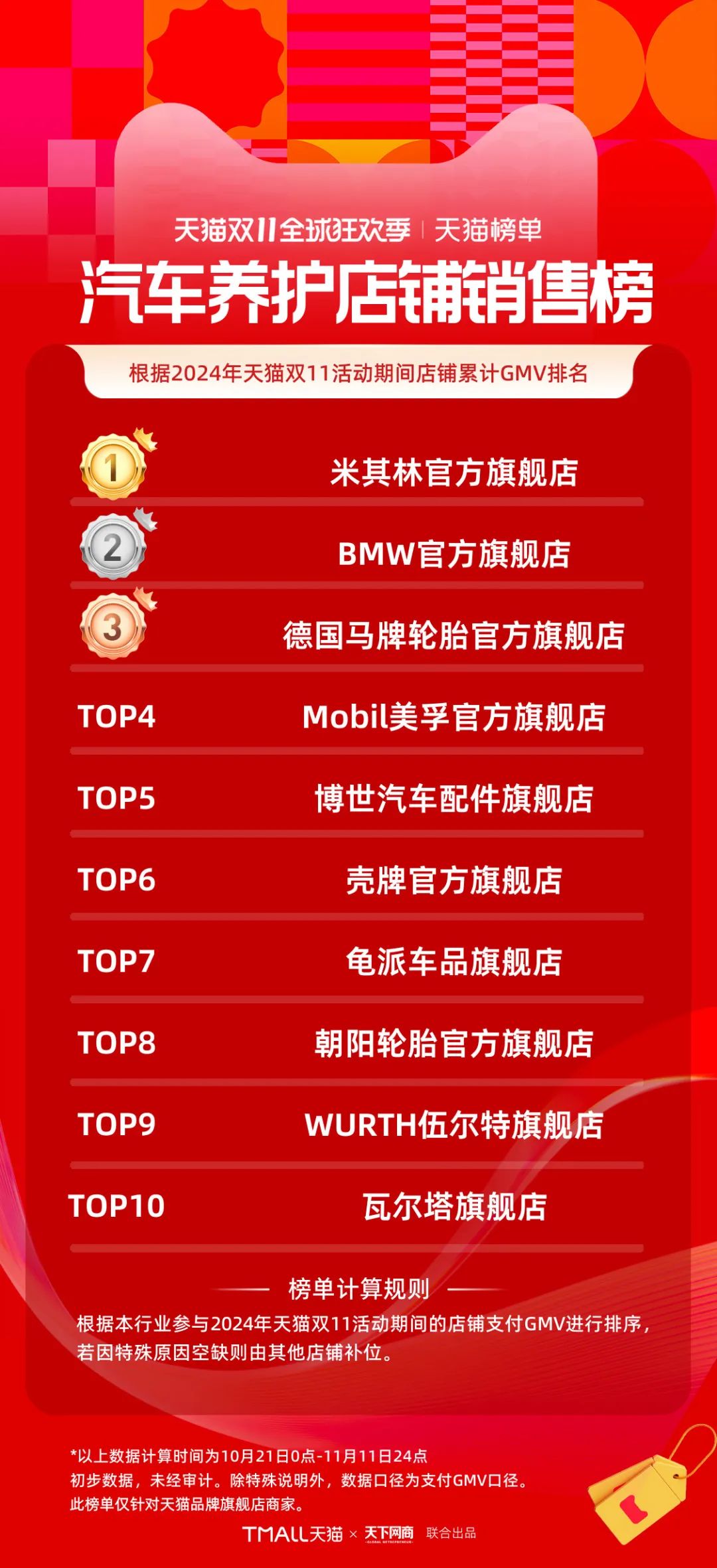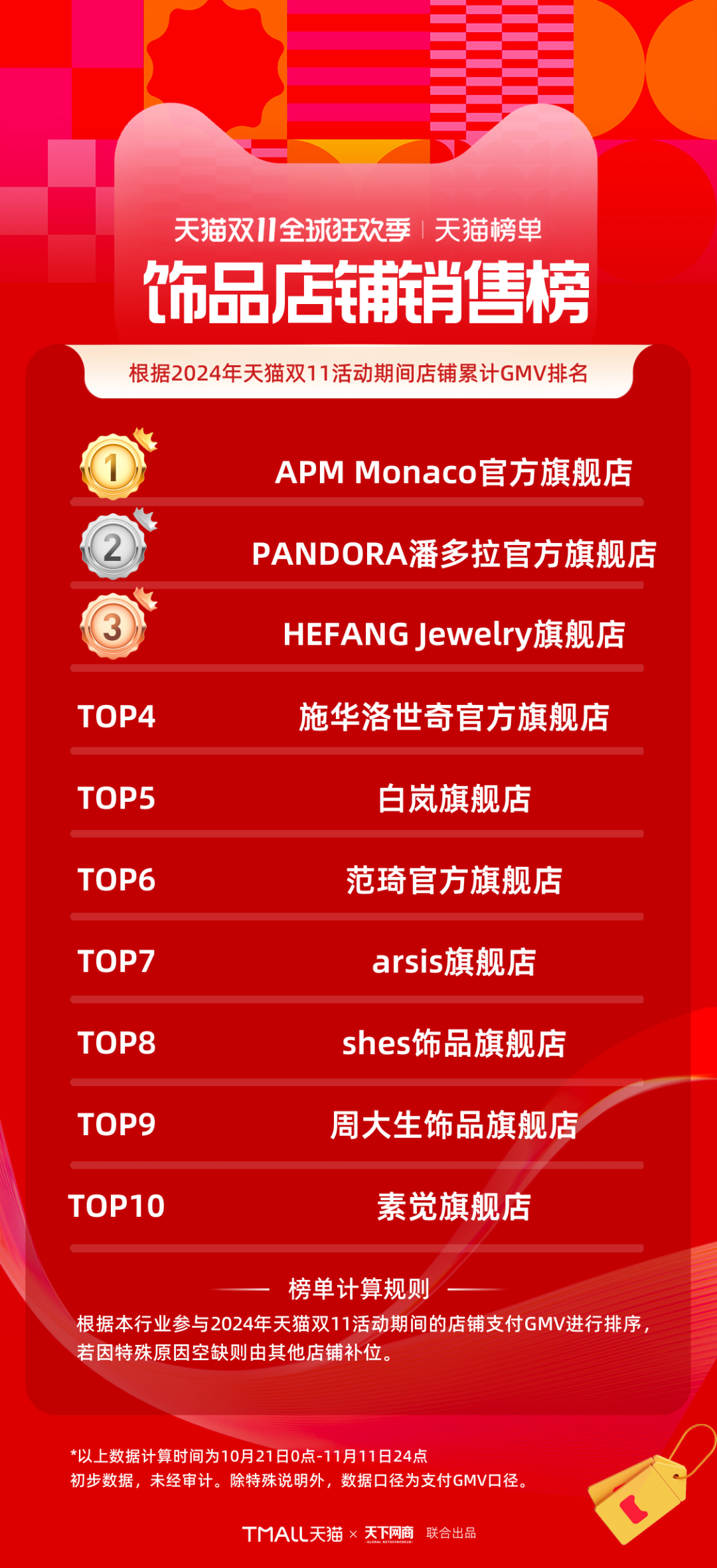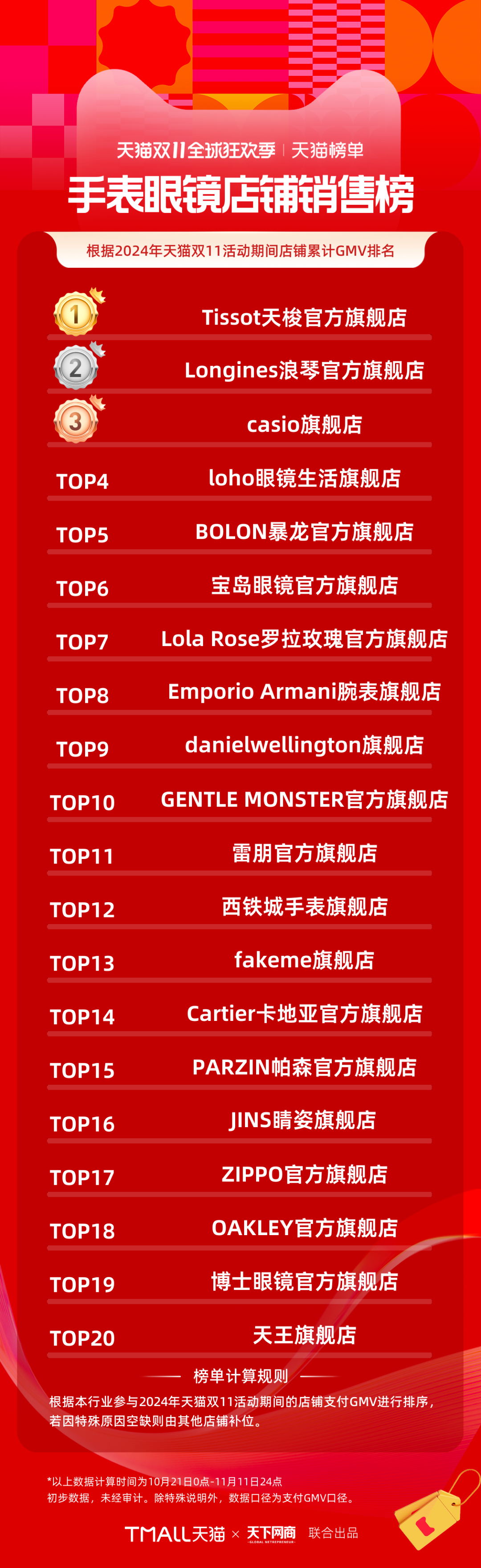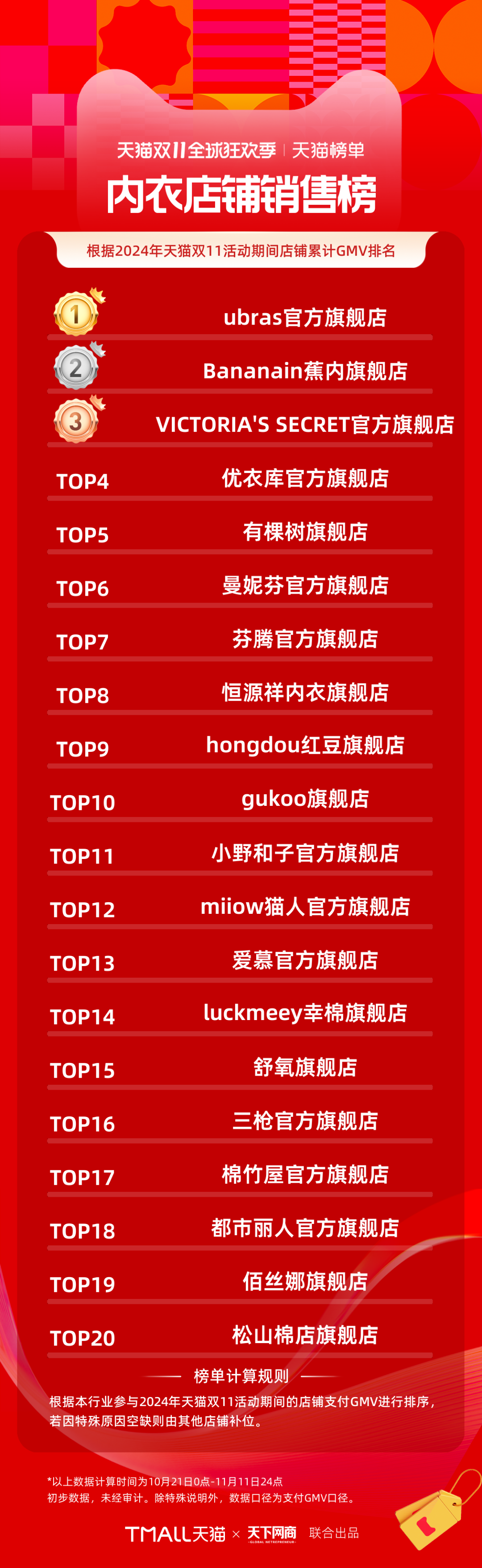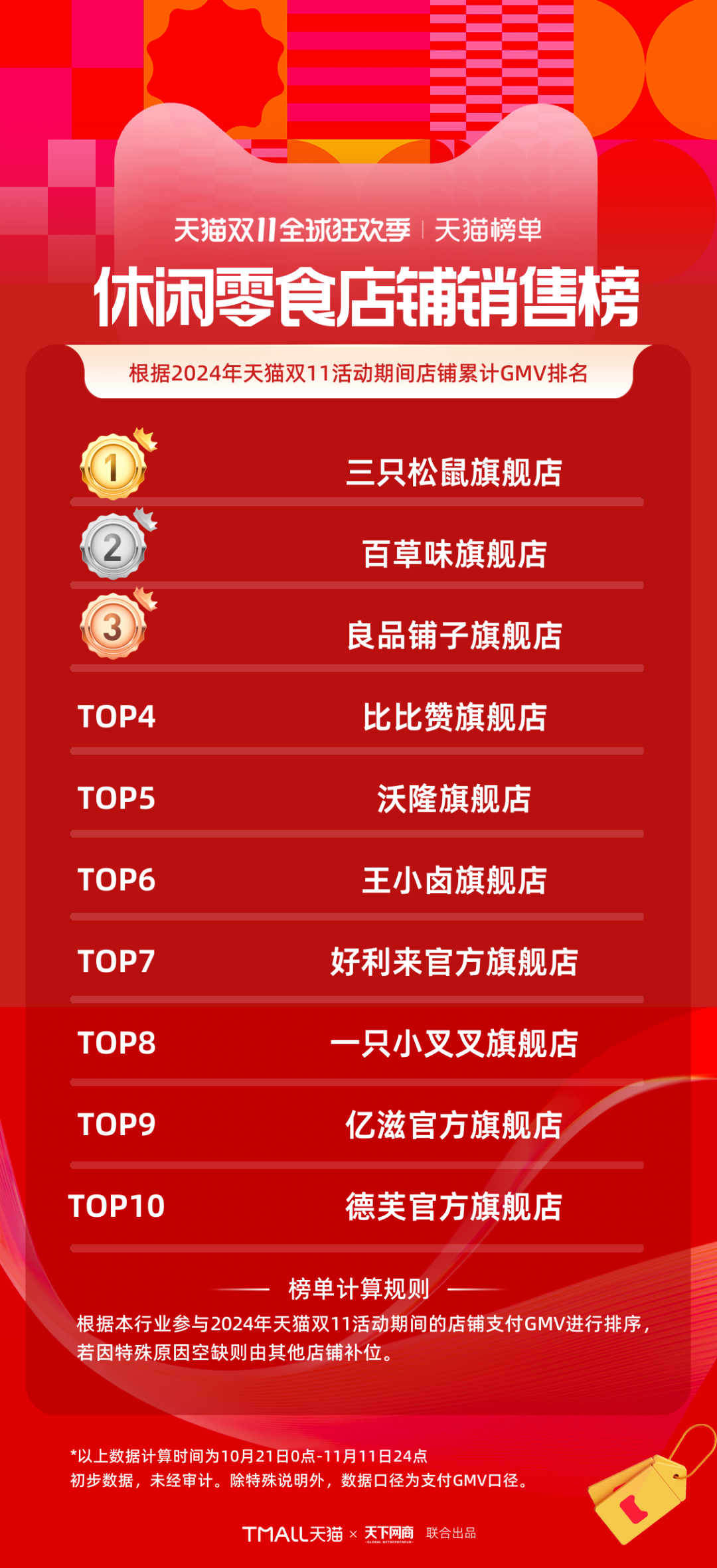 以下為《天下網(wǎng)商》聯(lián)合天貓發(fā)布的2024年天貓雙11全周期(10月21日-11月11日)品牌成交排行榜。