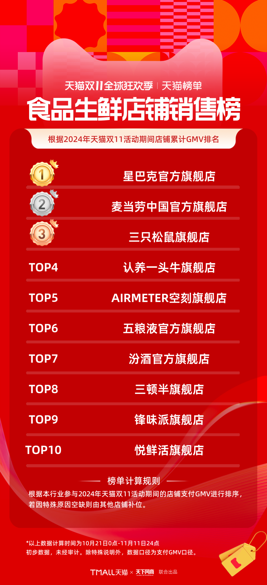 食品生鮮品牌排行榜中,星巴克、麥當(dāng)勞、三只松鼠成為今年天貓雙11全周期食品生鮮店鋪銷售榜“三強(qiáng)”。