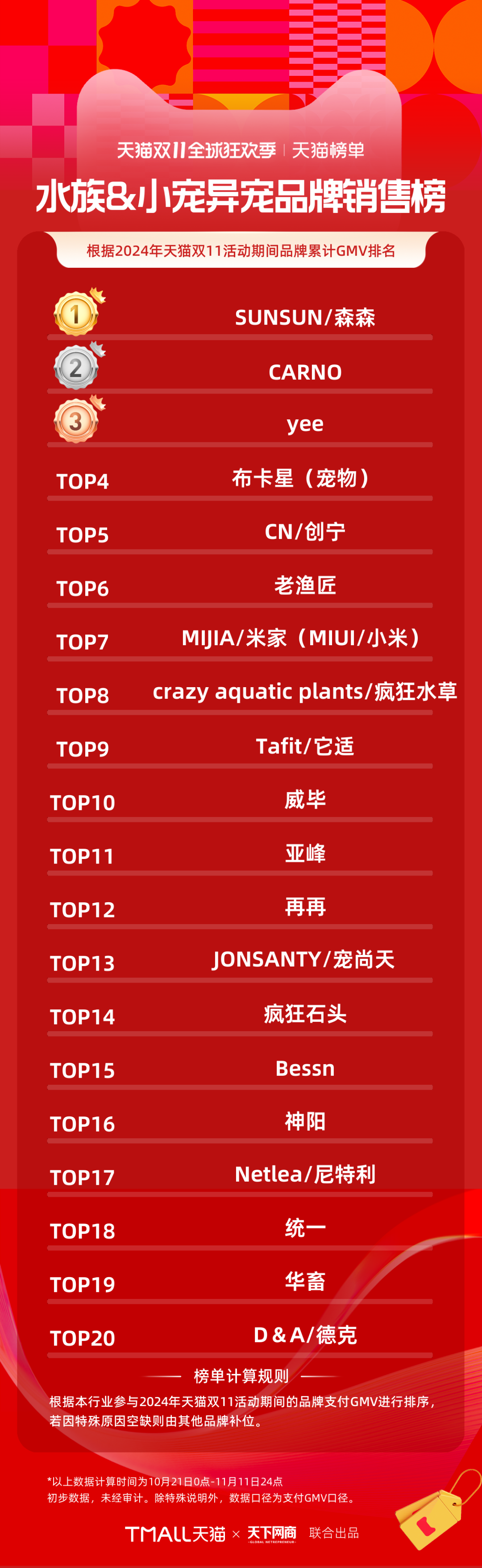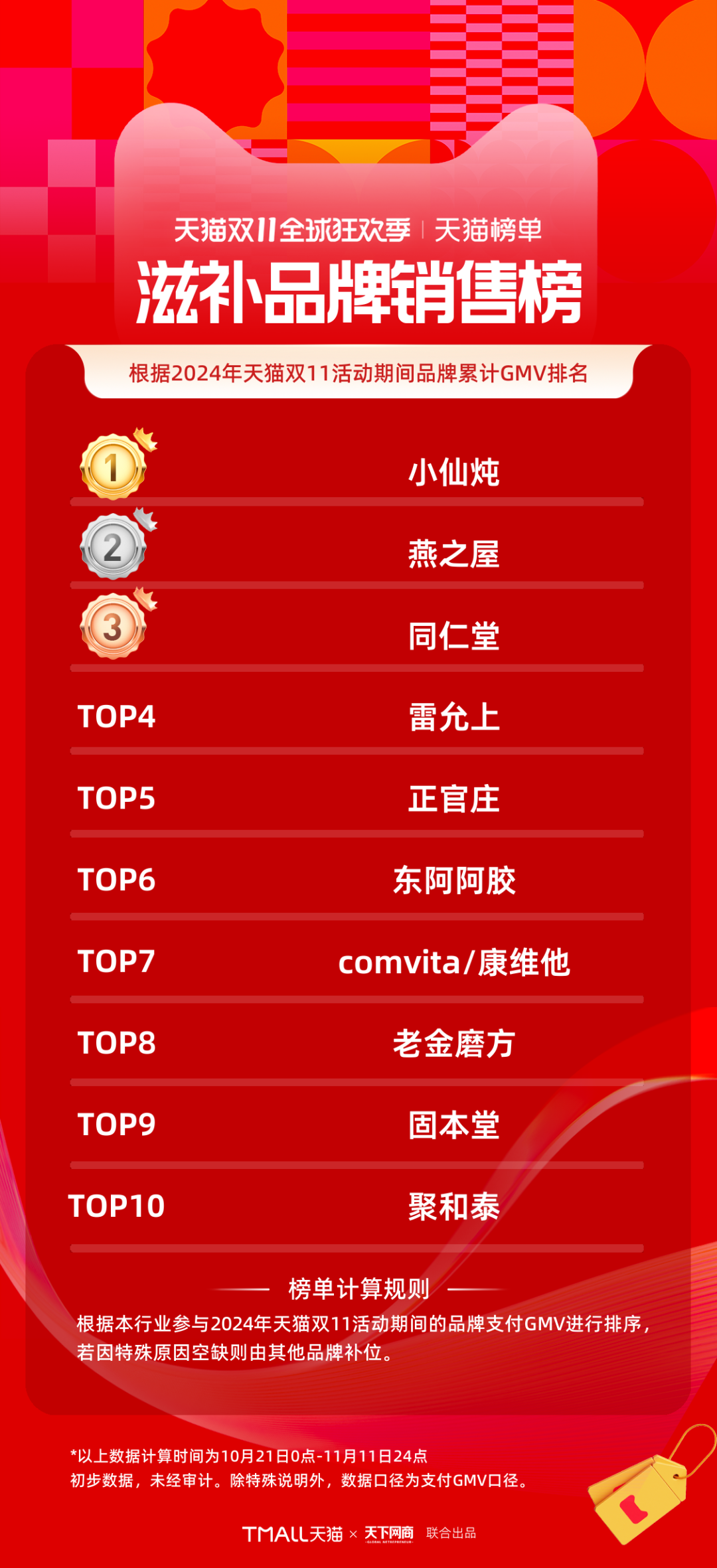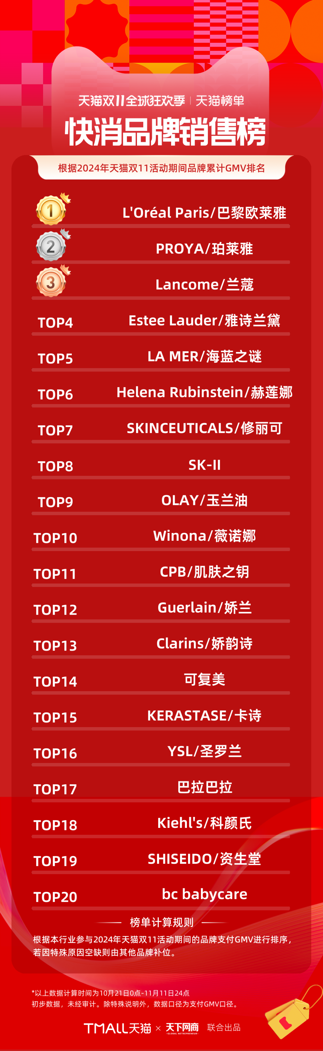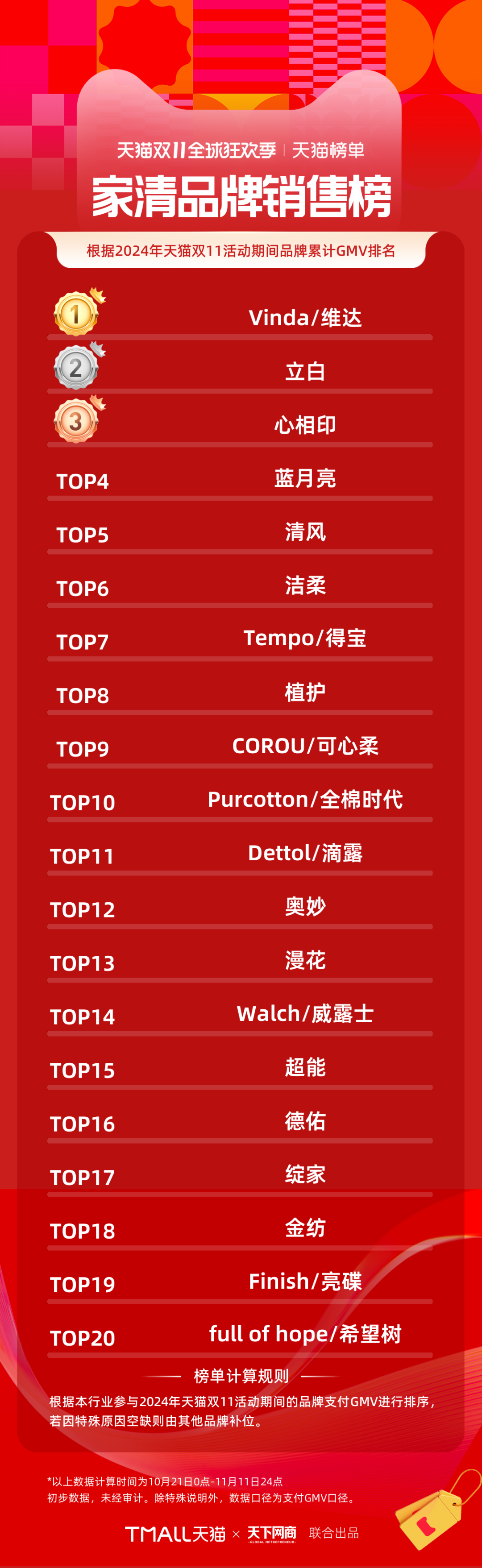 2024天貓雙11全周期品牌成交排行榜出爐!