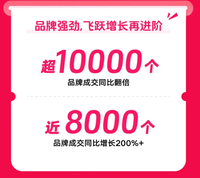 抖音方面,數(shù)據(jù)顯示從10月8日到10月20日,抖音電商出現(xiàn)了380個破千萬直播間,超過10000個品牌成交額同比翻倍,還有近8000個品牌同比增長超過200%。