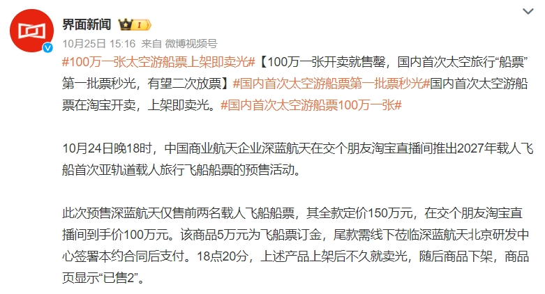 在“交個朋友”的直播間里,能經(jīng)常看到令人咋舌的高價科技單品,價值150萬元的太空飛船船票、200萬元的國產(chǎn)商用衛(wèi)星、199萬元的無人駕駛空中巴士……