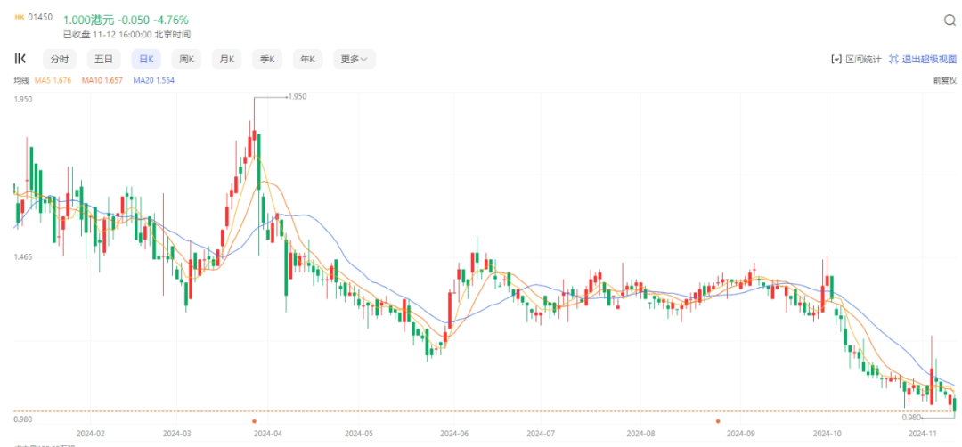 而今年“雙11”的喜人戰(zhàn)績似乎也沒有為交個朋友控股的股價帶來明顯的拉升;11月12日,交個朋友控股(1450.HK)當日股價下跌4.76%,報收1港元/股,總市值13.86億港元。