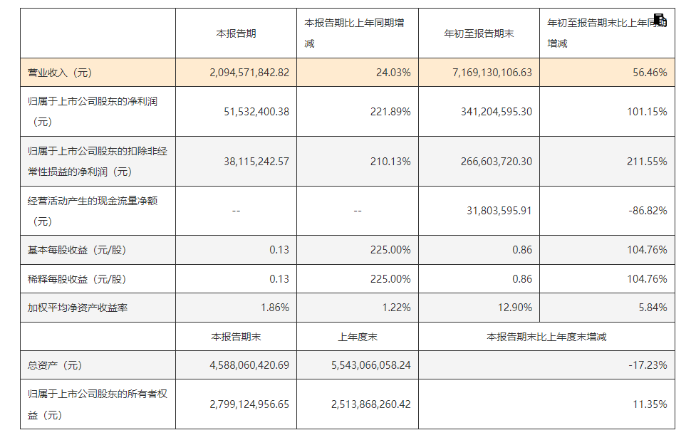 今年前三季度,三只松鼠實現(xiàn)營收71.69億元,同比增長56.46%;凈利潤為3.41億元,同比增長101.15%。