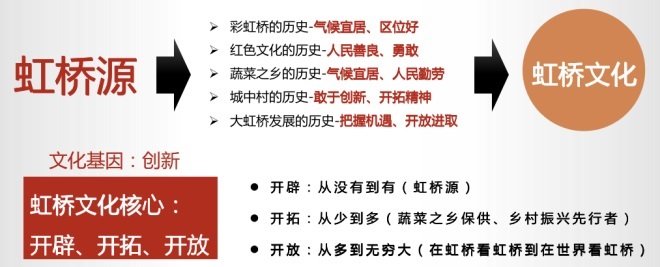 從過去的蔬菜田到現(xiàn)在的產(chǎn)業(yè)田,虹橋鎮(zhèn)的發(fā)展離不開“創(chuàng)新”的文化基因傳承。正是由于歷代虹橋人始終立足全局、搶抓機遇,秉承著開辟、開拓、開放的城市精神,開辟了從一座橋到一個鎮(zhèn)的源起之路,開拓了從蔬菜之鄉(xiāng)到樓宇經(jīng)濟重鎮(zhèn)的興盛之路,開放了讓世界認識虹橋的門戶要塞。