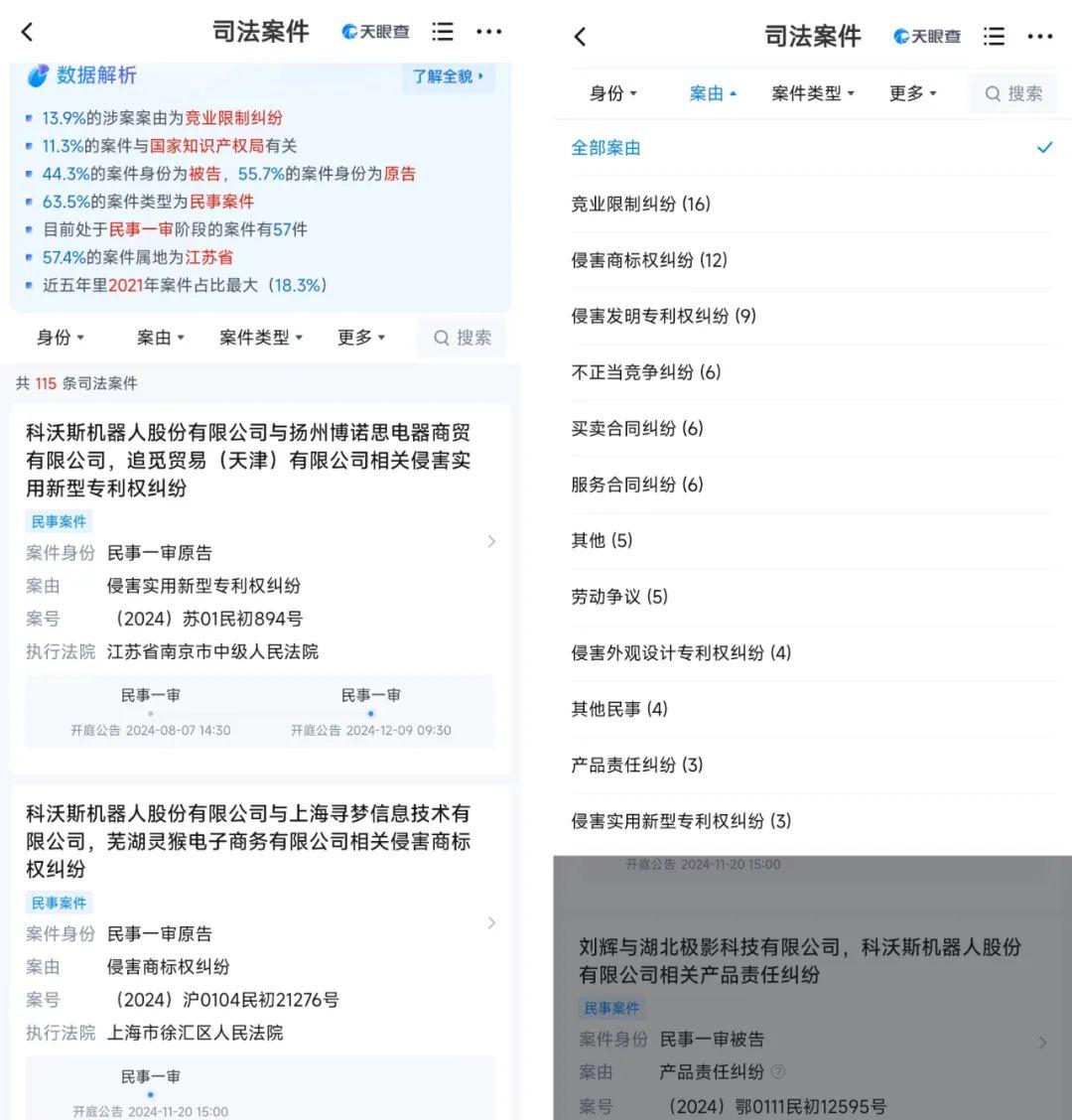 事實(shí)上,科沃斯與杉川機(jī)器人的糾紛并非只是個(gè)例,科沃斯與石頭科技、追覓科技等多家競(jìng)爭(zhēng)對(duì)手之間均發(fā)生多起競(jìng)業(yè)限制糾紛、商標(biāo)權(quán)糾紛以及專利糾紛等。