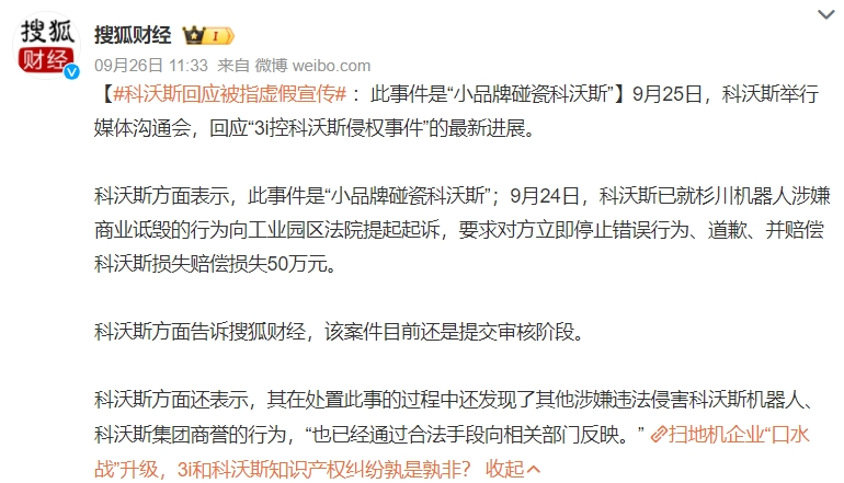 對(duì)于這樣的指控,科沃斯并不接受,認(rèn)為雙方在技術(shù)的具體應(yīng)用和效果上可能存在差異,并不考慮撤回相關(guān)的宣傳,并稱此事件是“小品牌碰瓷科沃斯”,已就杉川機(jī)器人涉嫌商業(yè)詆毀的行為向工業(yè)園區(qū)法院提起起訴。目前,雙方各執(zhí)一詞,都聲稱自己擁有相關(guān)的專利技術(shù);但無(wú)論最終判決結(jié)果如何,這起糾紛已經(jīng)引起了公眾和行業(yè)的關(guān)注。