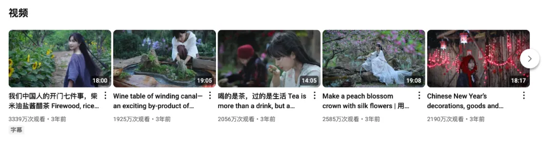 李子柒在YouTube平臺的作品播放量 圖源:YouTube
