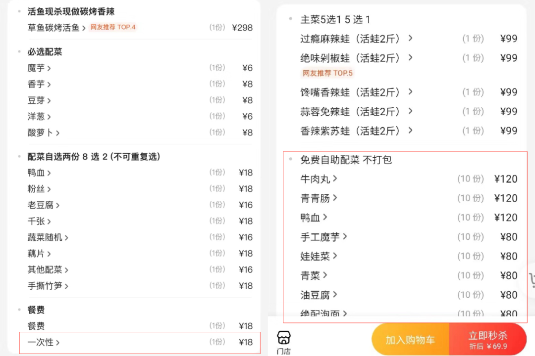 錢怡仔細算一下,這個套餐補上差價其實也不便宜了,就按一只羊四十多斤的重量來算,結賬的時候至少要補五六百元,而正常情況下去門店直接點單,活羊現(xiàn)殺現(xiàn)烤按斤稱重的話,一只吃下來肯定要花上千元,“本來就在重量上玩套路了,這種價位還包是活羊,誰敢信?”