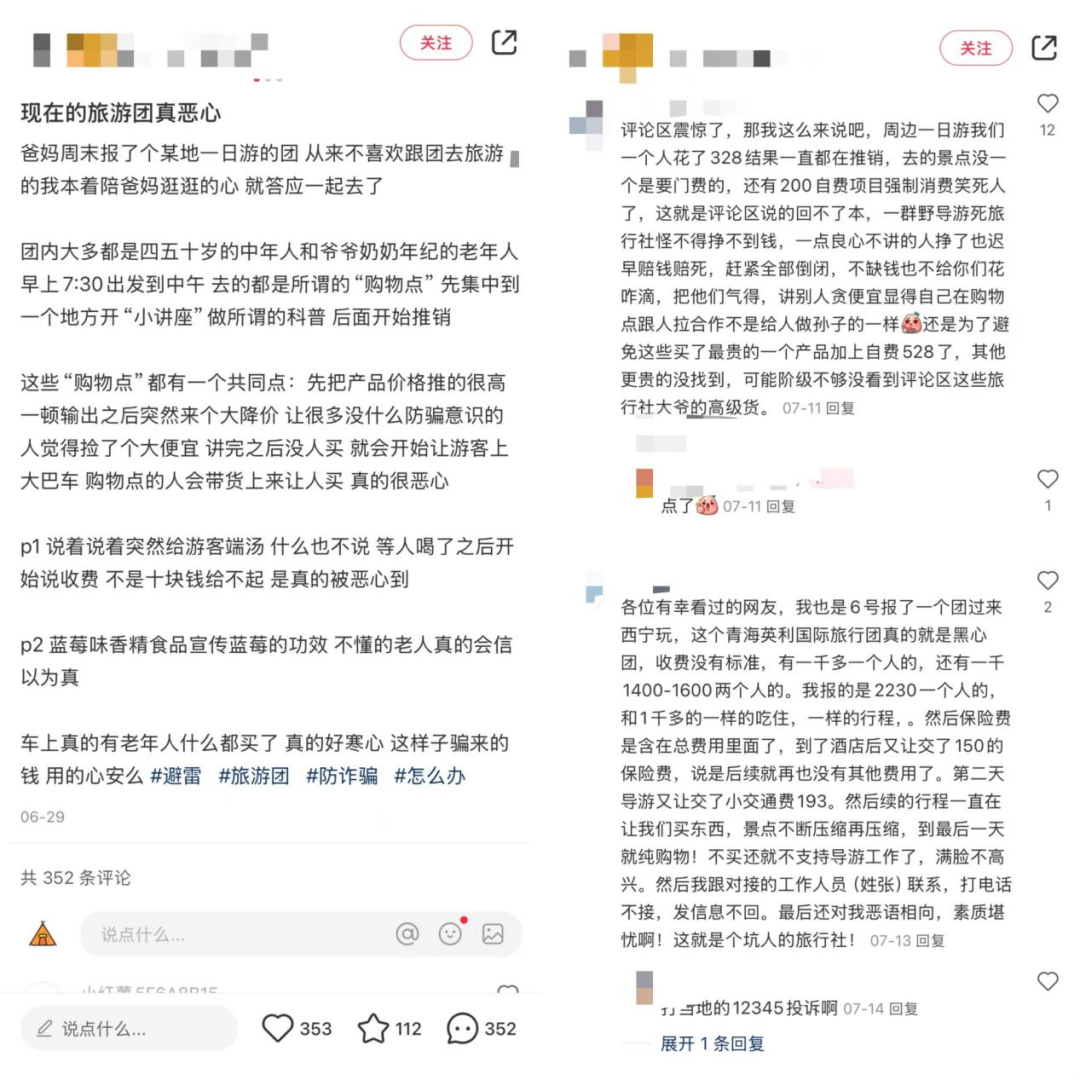 在網(wǎng)上分享了自己的奇葩經(jīng)歷過后,馮琪也看到了不少類似的吐槽:“我參加過35歲以上的老年團,我樣子不像他們一開始還不讓我進,好說歹說才讓我坐最后,就這個團讓我見識了什么叫有效推銷,一開始是免費送贈品,后面陸續(xù)增加5元、10元、50元、100元……看我不買,我旁邊的阿姨還給了我10元,讓我以我的名義代她買,她覺得很值”“我陪我姨媽也去過2天低價旅游團,同樣的聽講賣東西,我們把口袋扎緊了沒買,但是同行的一個大爺花了1200元只得到了一口鍋……”