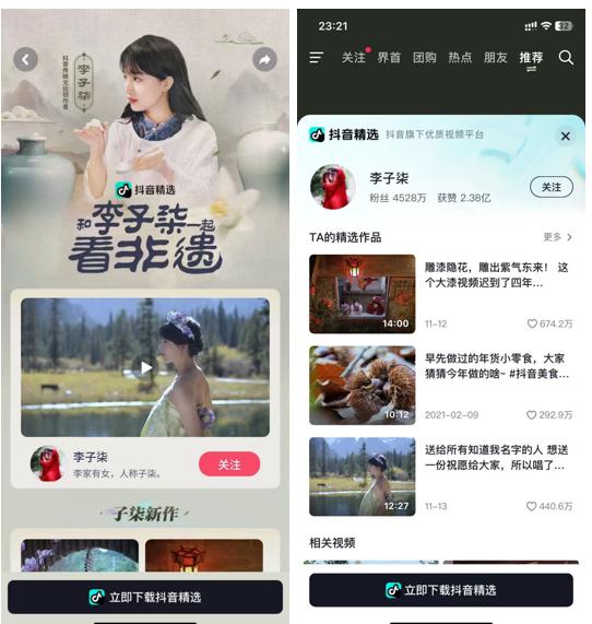事實上,李子柒IP賬號不僅含金量巨大,且能深入挖掘的變現(xiàn)有很多。一方面,李子柒復(fù)出后,抖音投入大量資源宣傳。這就意味著李子柒和字節(jié)的關(guān)系已經(jīng)很近,借助字節(jié)成熟的商業(yè)化團隊,能為李子柒定制更多適合其賬號的變現(xiàn)方式。另一方面,李子柒IP賬號+非遺文化宣傳+文旅發(fā)力,這不僅更貼合李子柒賬號本身,也能讓各地文旅局看到破圈宣傳的新方式。