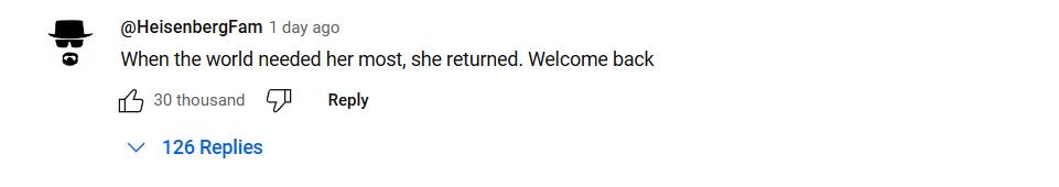 在世界最需要她的時候、她回來了,歡迎回來。這條評論在引發(fā)全球各國網(wǎng)友共鳴的同時,點贊量高達3萬+。