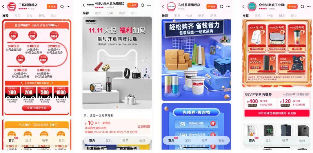 天德:今年雙11開賣首日,淘寶企業(yè)購超過200個類目成交同比翻倍,零件耗材、電子電氣、整機(jī)設(shè)備等多個細(xì)分市場成交破億。開賣前4小時,品牌爆發(fā)強(qiáng)勁開局,工業(yè)電氣品牌正泰成交同比超過250%,緊固件品牌天卓五金成交同比超過140%,保險箱品牌虎牌、辦公家具品牌摩基成交同比超過3000%。此外,德力西電氣通過廠家直營和授權(quán)代理商雙渠道入駐淘寶企業(yè)購,截至10月24日15點(diǎn),其線上成交規(guī)模超過2000萬,同比增長53%。