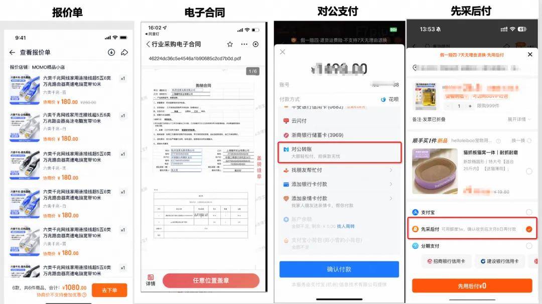優(yōu)化體驗(yàn),完善對公支付、電子合同、先采后付等功能,提供更便捷的采購體驗(yàn)。