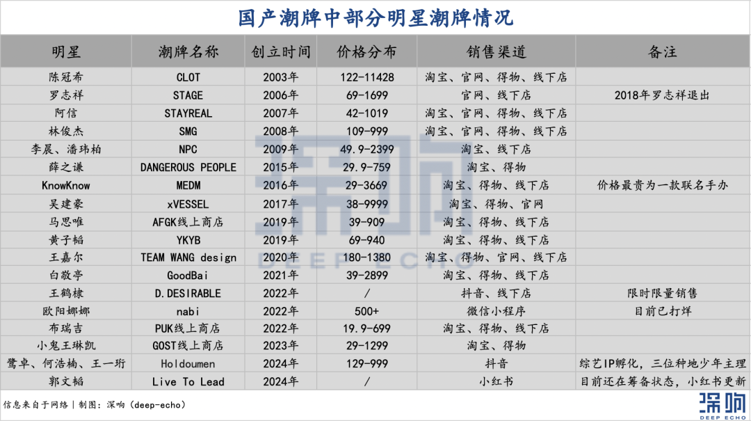 此前國產(chǎn)潮牌大致分為兩類:一類由85后、90后獨(dú)立設(shè)計師創(chuàng)立,另一類是明星的副業(yè)。據(jù)RET睿意德中國商業(yè)地產(chǎn)研究中心報告,2018年前后有六成多的明星選擇打造原創(chuàng)服飾品牌,Rapper老舅還曾在說唱綜藝?yán)锍剑骸澳銈儾皇荝apstar,你們是賣衣服的。”