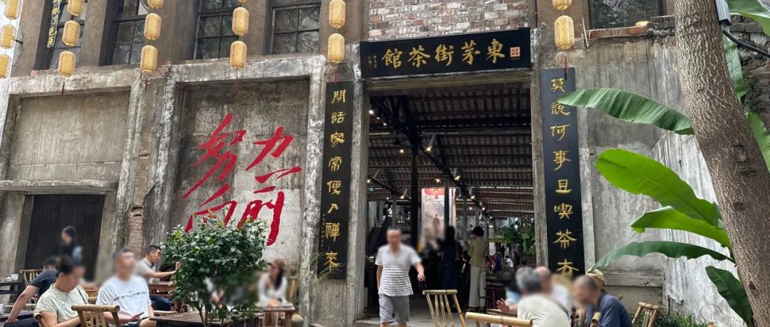 在湖南芙蓉區(qū)五一廣場附近的IFS國金中心,站在迪奧、巴黎世家、愛馬仕店對面,穿過一條窄巷,是一家開在老小區(qū)兩個月的東茅街茶館,算是當(dāng)下長沙新消費圈的新晉打卡地。