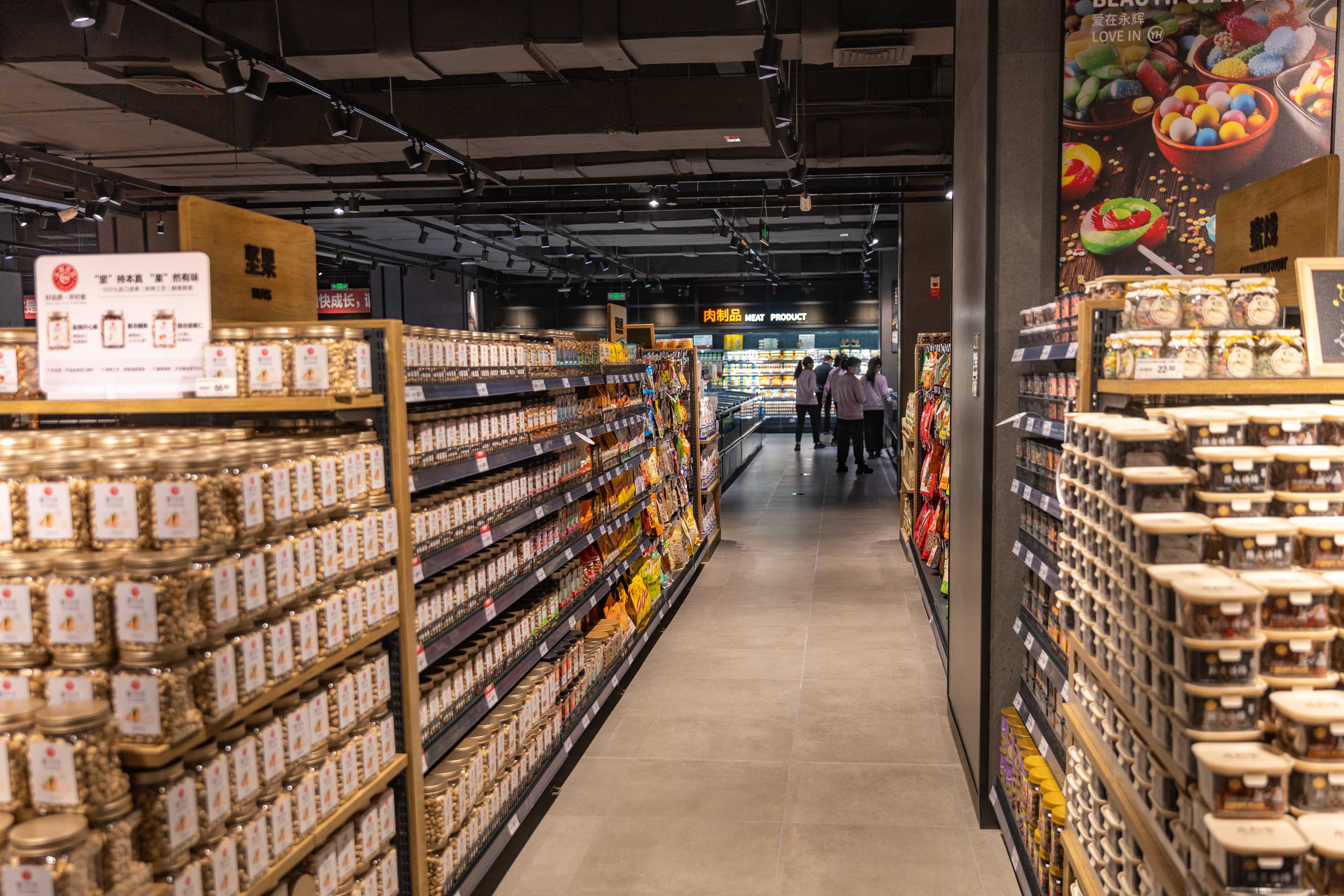 調(diào)改后的永輝超市整體形象煥然一新,門店整體呈暗色,通過光線引導(dǎo)讓消費(fèi)者目光更加聚焦商品本身。與此同時(shí),超市拓寬賣場(chǎng)通道,取消了強(qiáng)制動(dòng)線,不再通過大堆頭和高貨架的陳列引導(dǎo)或限制顧客購物動(dòng)線。收銀線位置也重新進(jìn)行調(diào)整,給予顧客便捷和自由。