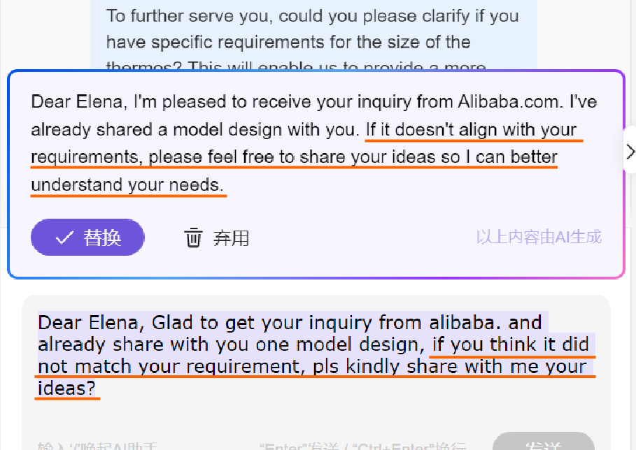 OKKI AI輔助外貿(mào)新手溝通潤色,圖源阿里巴巴國際站官方微信公眾號