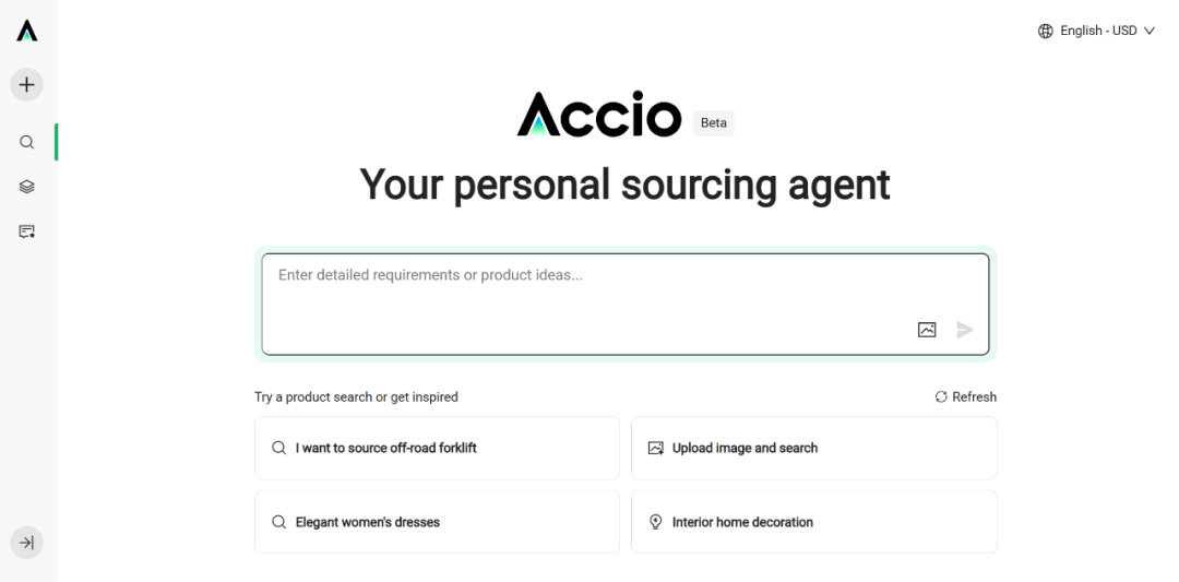 據(jù)了解,Accio解決了很多海外采購商“不知道怎么問問題”“怎么根據(jù)需求準(zhǔn)確地搜索”的難題,用戶可以用“大白話”來詢問AI、提出需求。