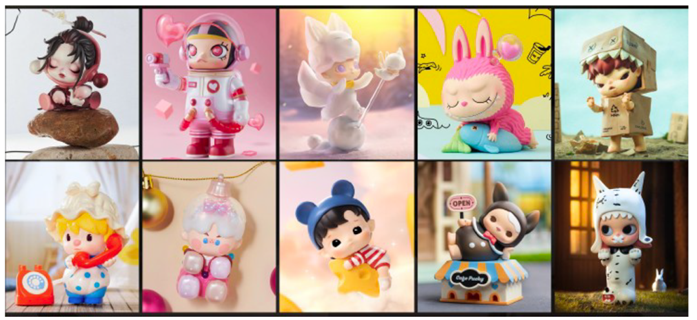 從IP形象看,泡泡瑪特更傾向于選擇偏亞洲風(fēng)格的大頭、大眼睛、小嘴形象。