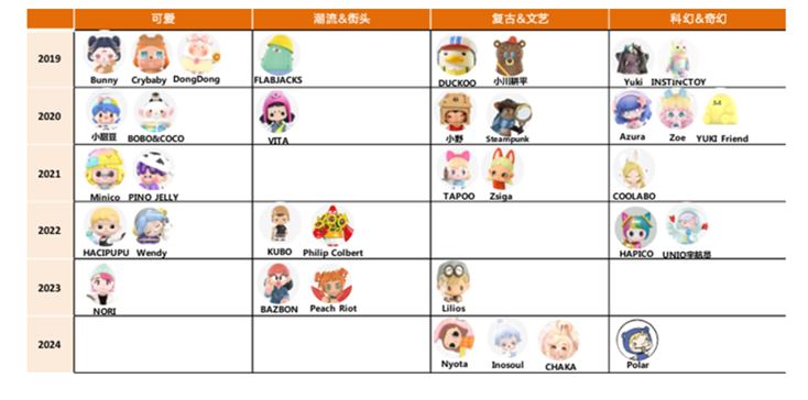 表1 2019年-2024年泡泡瑪特不同風(fēng)格玩偶