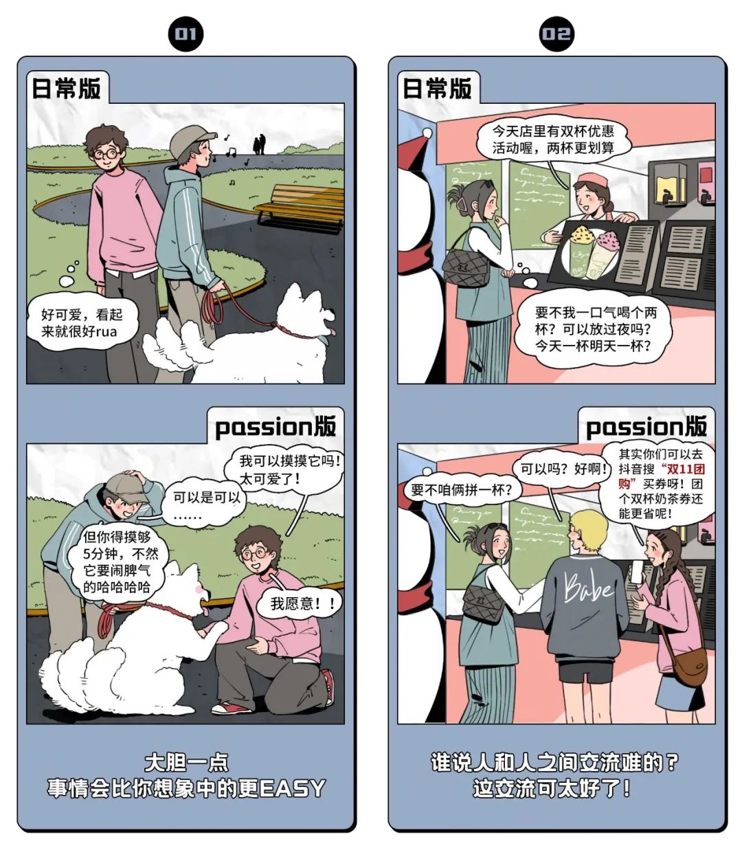 隱藏在常規(guī)玩法中的,是抖音生活服務(wù)創(chuàng)新的溝通方式。不同于大字報式的促銷貼圖,或是洗腦式的搶購口播,抖音生活服務(wù)選擇了以趣味條漫的形式來幫助品牌做C端的溝通。