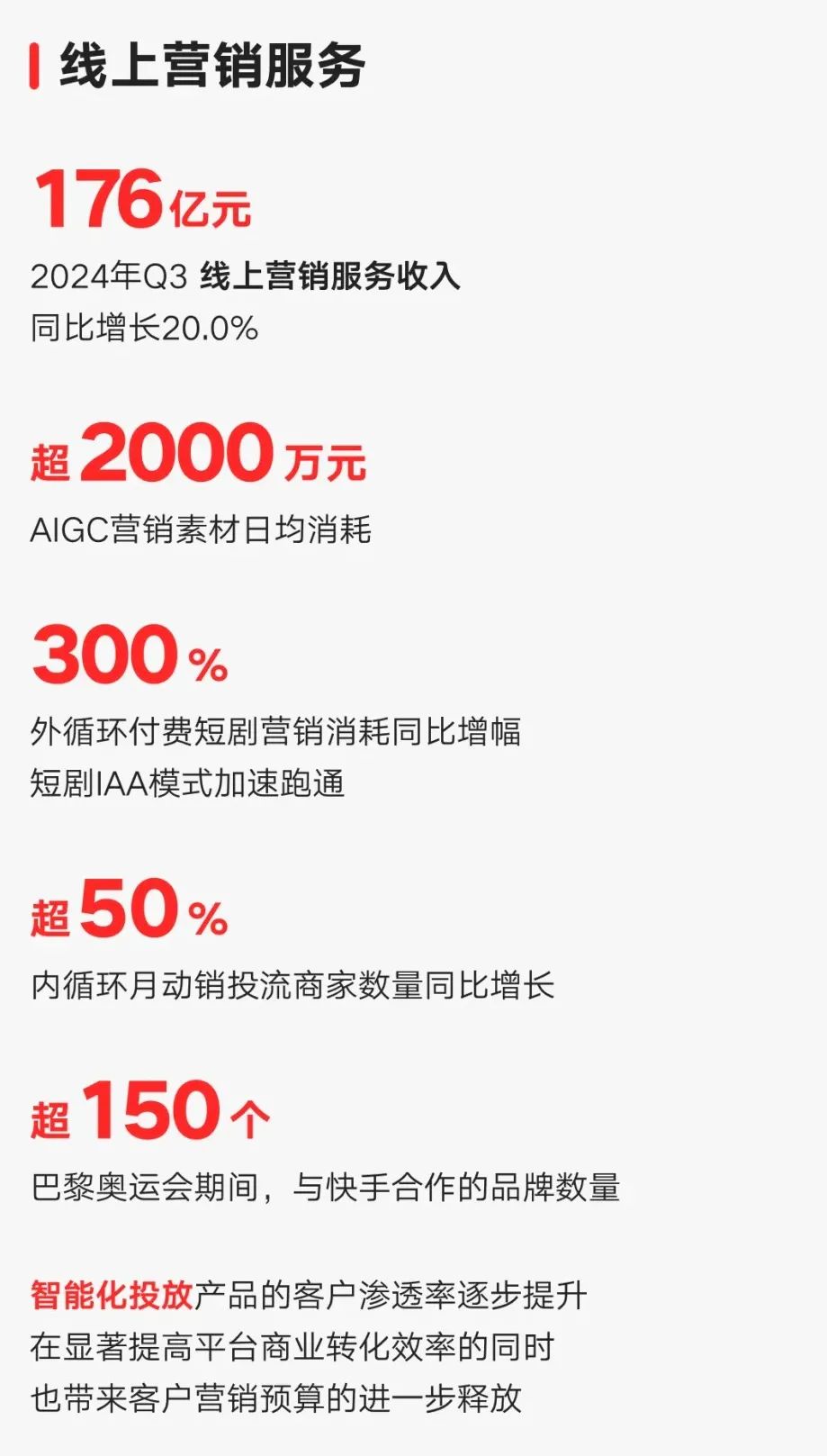 除了短劇之外,今年三季度,巴黎奧運(yùn)會(huì)這一體育大IP,也為快手帶來了較強(qiáng)的商業(yè)化提振效應(yīng)。