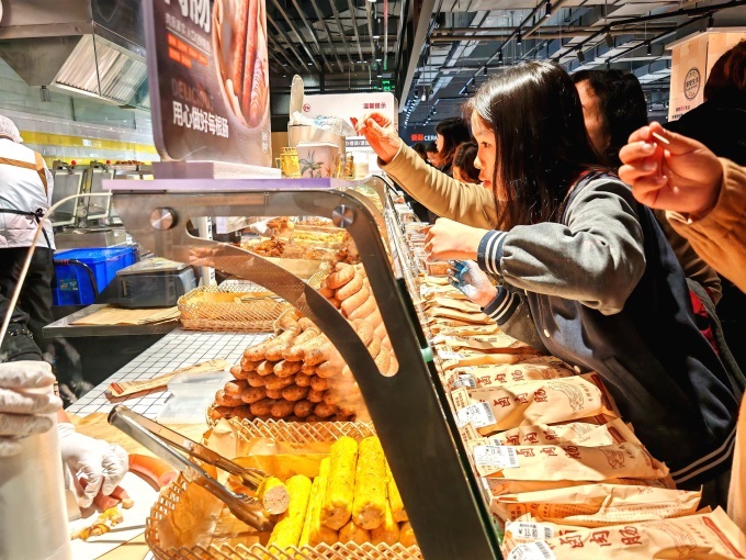 此外,廬陽萬象匯店的烘焙經(jīng)營模式改為自營,現(xiàn)場烤制的面包等受到市民歡迎,熟食則選用了胖東來的供應(yīng)商,也引進(jìn)了本地特色美食,如吳山鵝貢、土家燒餅等。