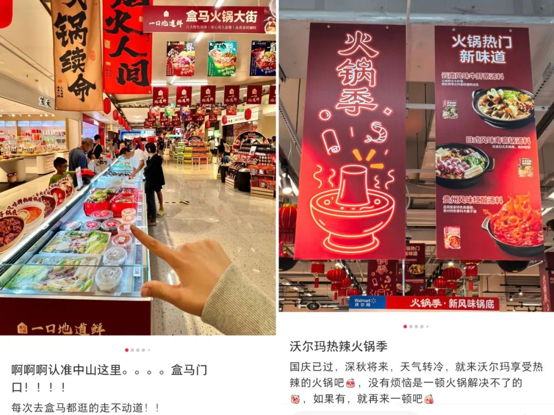 網(wǎng)友在小紅書上分享“沃爾瑪你改行開火鍋店叭”,從火鍋底料、到涮菜、肉品、丸滑等涮品應有盡有。關鍵是,鍋底、食材、蘸料、飲品等也能稱得上的到家吃火鍋的一站式服務,便利性基本能夠和火鍋食材超市抗衡,大家都在搶占宅家吃火鍋的需求,而市場就這么大,可被替代的選擇和獲取方式卻越來越豐富。