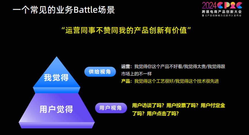 本質(zhì)上看,是兩者對(duì)于“什么是好產(chǎn)品”沒(méi)有統(tǒng)一的邏輯判斷標(biāo)準(zhǔn)。所以,解決這個(gè)事情根本的辦法,是把大家判斷的標(biāo)準(zhǔn)統(tǒng)一成用戶視角。