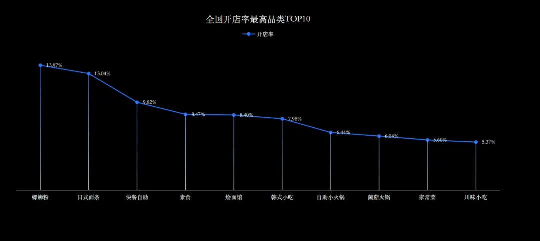 從上面這張圖可以看到,今年上半年到現(xiàn)在第三季度,凈開(kāi)店率最高的10個(gè)品類(lèi),基本是剛需、低客單消費(fèi)的品類(lèi)。