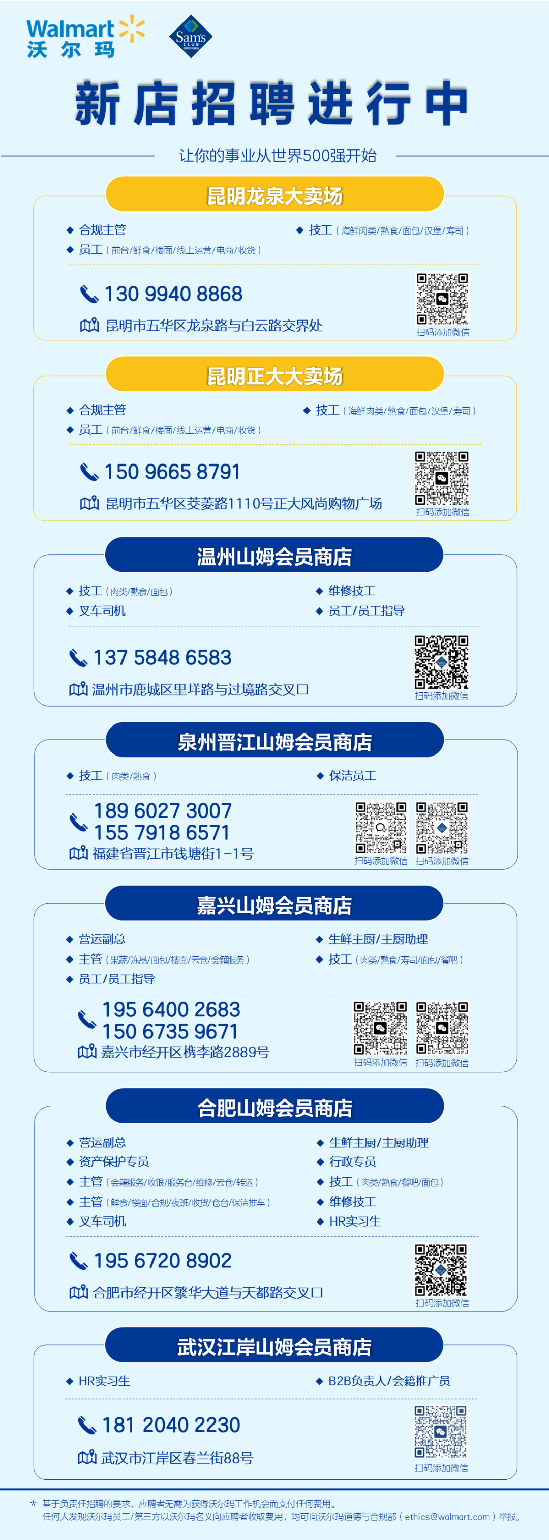 《零售圈》從沃爾瑪招聘官方了解到,目前仍有5家新店進入“招聘”階段,包括位于正將溫州鹿城區(qū)的山姆會員商店、福建泉州晉江市的山姆會員商店、浙江嘉興經(jīng)開區(qū)的山姆會員商店、安徽合肥經(jīng)開區(qū)的山姆會員商店以及武漢江岸區(qū)的山姆會員商店。進入招聘階段,意味著開業(yè)已經(jīng)進入倒計時,其中泉州晉江店應(yīng)該大概率會在年底前開業(yè)。
