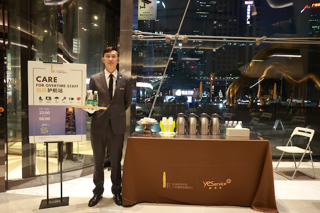 除此之外,廣州IFC的人文關(guān)懷服務(wù)也是相當(dāng)出色。全市首創(chuàng)夜間護(hù)航,深夜加班入戶關(guān)懷服務(wù)等,盡顯人文溫度。
