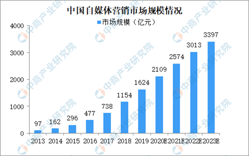 結(jié)合營(yíng)銷產(chǎn)業(yè)的發(fā)展趨勢(shì)來(lái)看,毛戈平可謂踩準(zhǔn)了時(shí)代的風(fēng)口。中商產(chǎn)業(yè)研究院披露的數(shù)據(jù)顯示,2019年-2023年,中國(guó)自媒體營(yíng)銷市場(chǎng)規(guī)模從1624億元增長(zhǎng)至3397億元,復(fù)合年增長(zhǎng)率高達(dá)20.26%。隨著用戶的注意力被博主吸引,自媒體日益成為品牌營(yíng)銷的關(guān)鍵陣地。