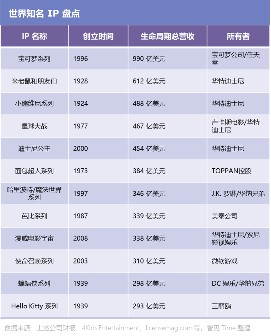 這樣正反饋的過(guò)程存留下來(lái)的是一個(gè)個(gè)堪稱(chēng)怪物級(jí)別的 IP。