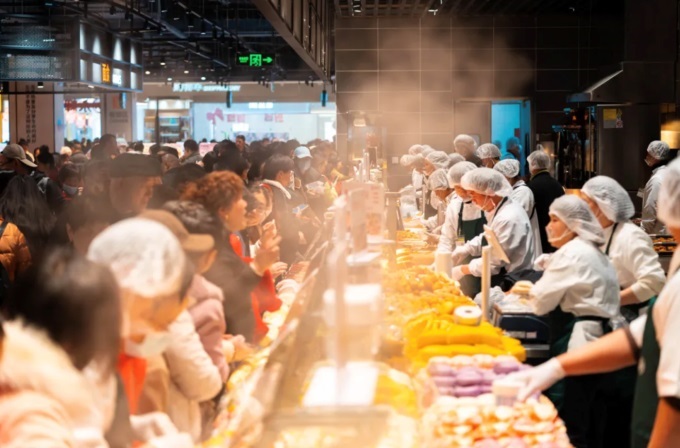 龍湖錦藝城店是胖東來(lái)幫扶調(diào)改的第四家門(mén)店,開(kāi)店首日消費(fèi)客流超過(guò)了1.8萬(wàn)人次,環(huán)比調(diào)改前增長(zhǎng)10.3倍,開(kāi)業(yè)兩日日均銷(xiāo)售額突破200萬(wàn)。門(mén)店引入了70余支胖東來(lái)DL商品,包括爆款的大月餅、精釀啤酒、花生油、燕麥片等。