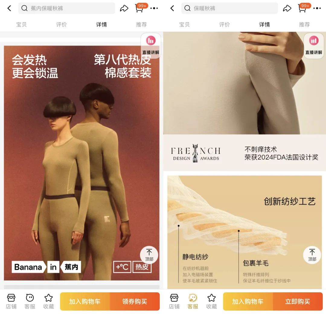 蕉內的創(chuàng)始人臧崇羽此前在采訪中提到,這是一個“貨源時代”,得益于國內極強的供應鏈能力,使得大量中小廠商能夠迅速響應市場需求,將產品推向線上市場。但與此同時,保暖內衣產品的核心價值——優(yōu)質原料、科技的運用、工藝的升級等等,這些“內在品質”又往往很難通過直觀方式展現(xiàn),站在消費者角度看衣服的“外在”其實都很相似,很難做出選擇。